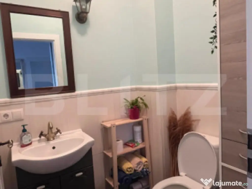 Blitz va propune spre vanzare un apartament cu 3 camere, decomandat, cu o suprafață de 74 mp, situat la etajul 1 într-un bloc tip vilă cu doar 6 apartamente. Compartimentarea este practică și include hol, 3 camere, bucătărie separată, două băi( una cu geam) și un balcon de 7 mp. Apartamentul este luminos, iar tavanul înalt de 2,8 m oferă o senzație plăcută de spațiu. În prețul afișat sunt incluse: garaj mare, cu spațiu de depozitare de 10 mp, înălțime 3,4 m boxă curte comună îngrădită, de aproximativ 300 mp, cu pomi fructiferi Apartamentul este situat în cartierul Mănăștur, pe strada Câmpului, la 2 minute de stația 42 și la 1,7 km de sensul giratoriu cu strada Frunzișului. Pentru mai multe informatii sau vizionare nu ezitati sa ne contactati! Cod ofertă / ID BLITZ: P163105 Id intern: P163105 Confort: 1 Tip imobil: Bloc de apartamente Număr Băi: 2
