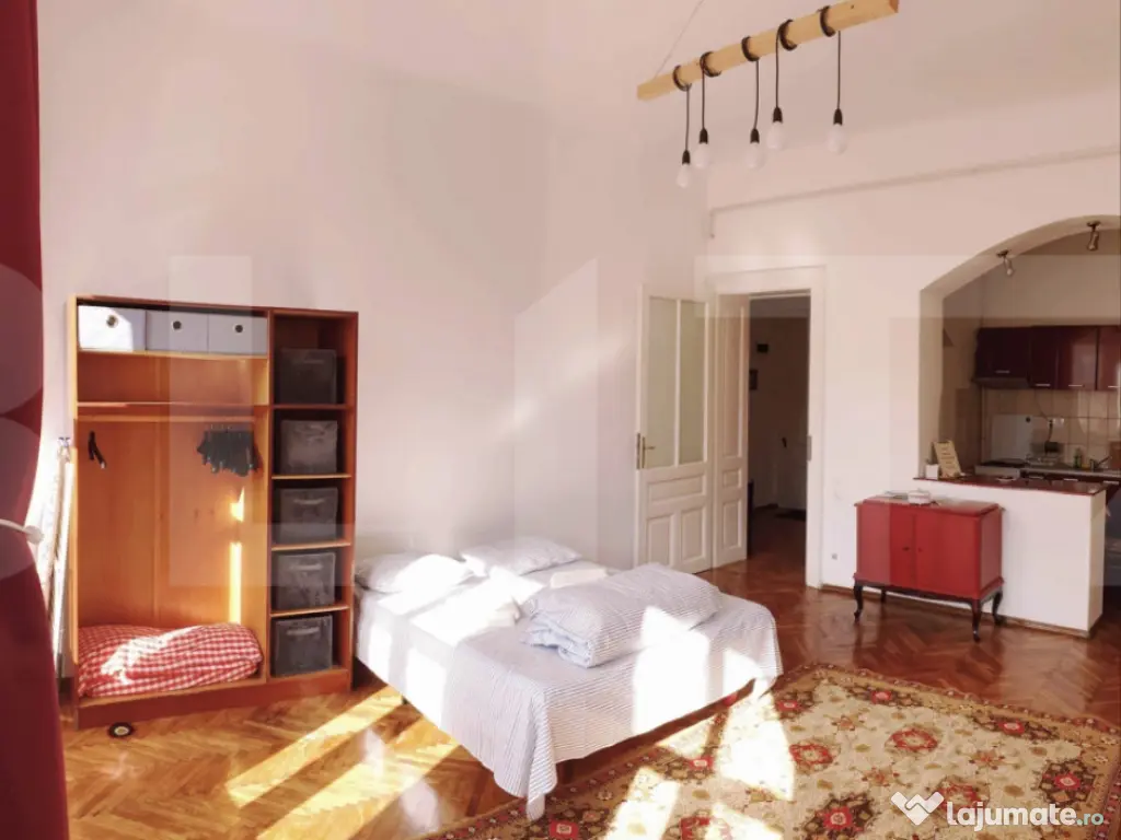 Vă oferim spre închiriere un apartament deosebit, situat chiar în inima orașului (zona ultra-centrală), ideal pentru cei care își doresc confortul unei locuințe moderne într-o clădire cu farmec și caracter. Caracteristici Principale: Spațiu și Lumină: Camere înalte, specifice zonei centrale, care oferă o senzație de libertate, inundate de lumină naturală pe tot parcursul zilei. Compartimentare: Zona de living/dormitor generoasă, bucătărie separată și o baie modernă dotată cu cadă spațioasă de colț. Dotări și Facilități (Complet Mobilat și Utilat): Apartamentul este pregătit pentru mutare imediată, având tot necesarul pentru un stil de viață modern: Climatizare: Aer condiționat pentru zilele toride. Bucătărie: Complet utilată, inclusiv mașină de spălat vase, aragaz,cuptor cu microunde și spații de depozitare optimizate. Baie: Cu cada si mașină de spălat rufe inclusă. Entertainment: Smart TV și conexiuni pregătite pentru internet/cablu. Depozitare: Dulapuri încăpătoare și soluții inteligente pentru organizarea hainelor. Locație Strategică: Ești la doar câțiva pași de principalele puncte de interes ale orașului: Restaurante, cafenele și zone de promenadă. Instituții publice, bănci și centre de afaceri. Acces facil la mijloacele de transport în comun. Concluzie: Acest apartament îmbină perfect locația premium cu funcționalitatea completă. Este alegerea ideală pentru un tânăr profesionist sau un cuplu care vrea să simtă pulsul orașuluI. Cod ofertă / ID BLITZ: P169205 Id intern: P169205 Confort: 1 Tip imobil: Bloc de apartamente Număr Băi: 1