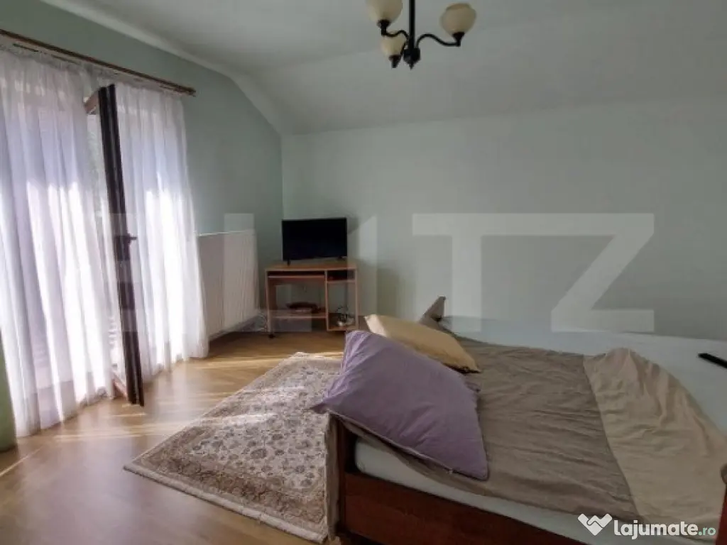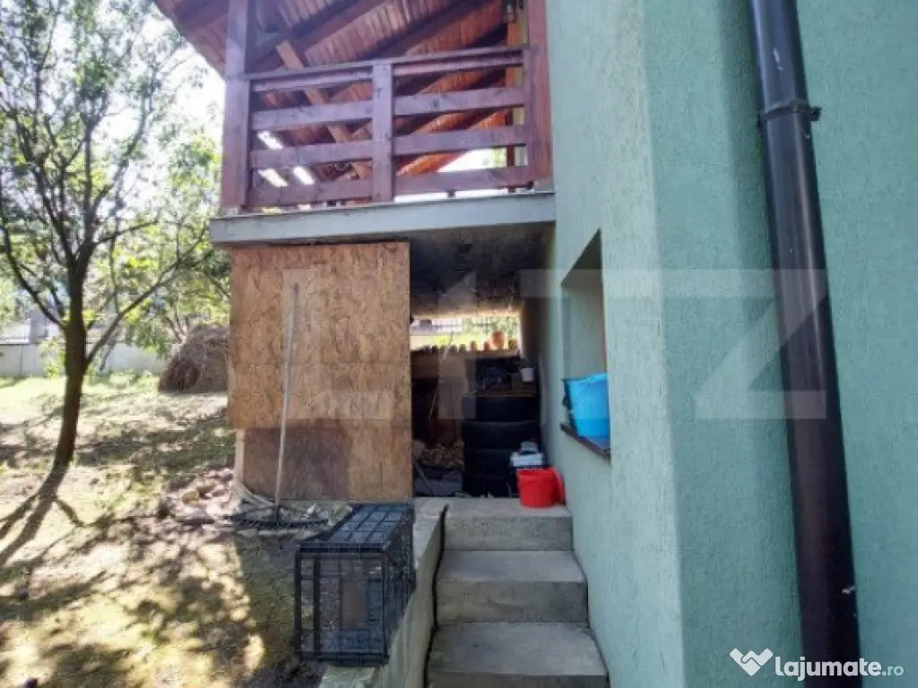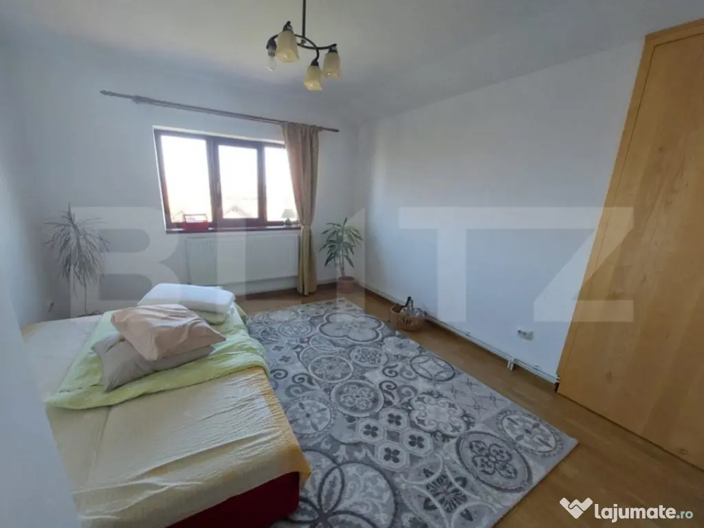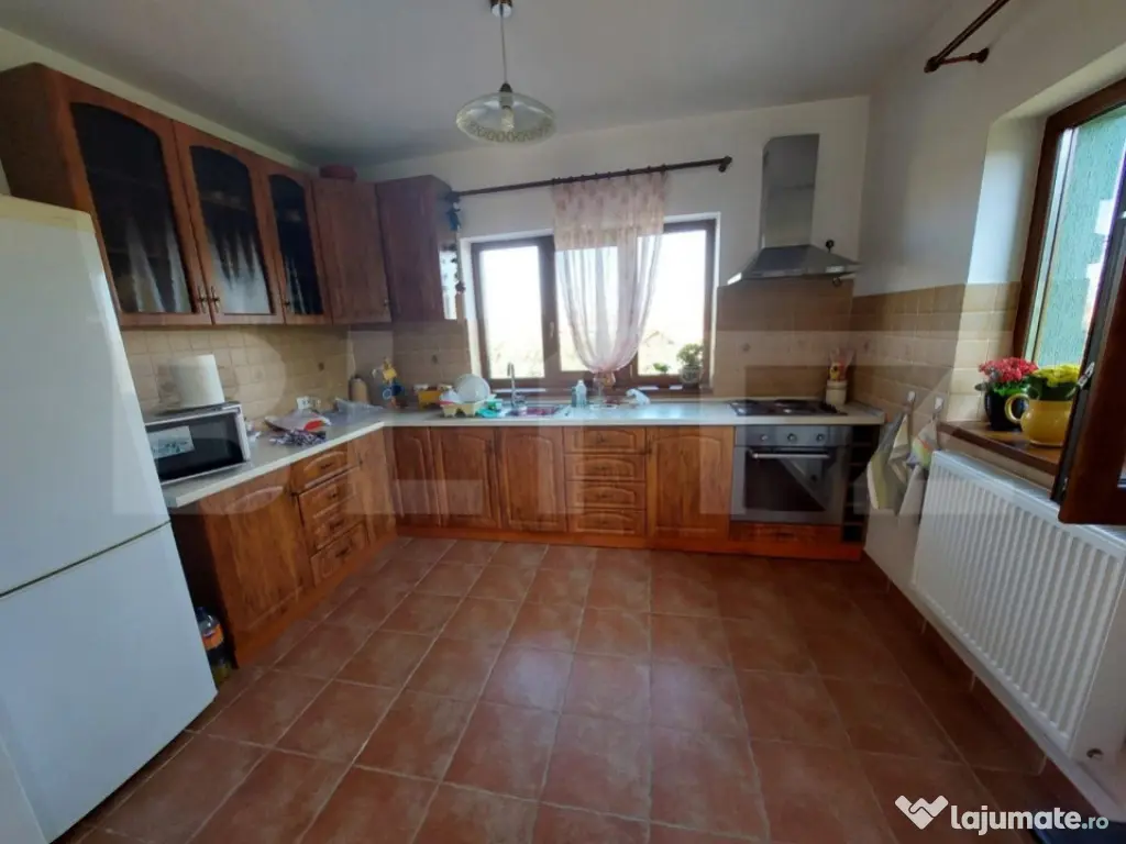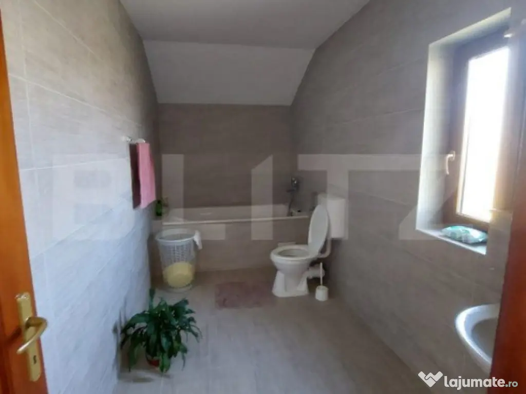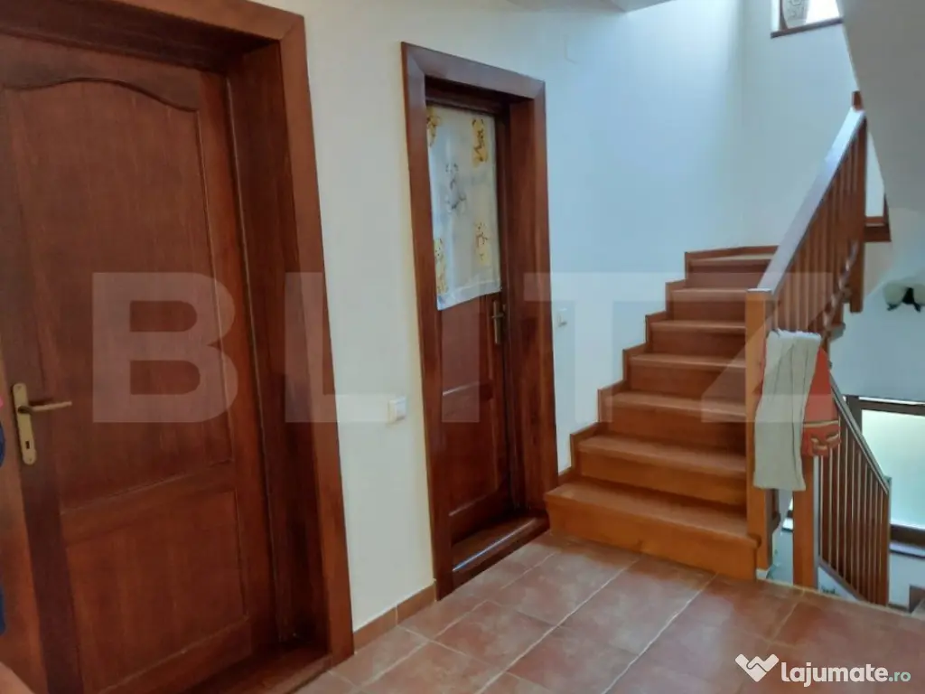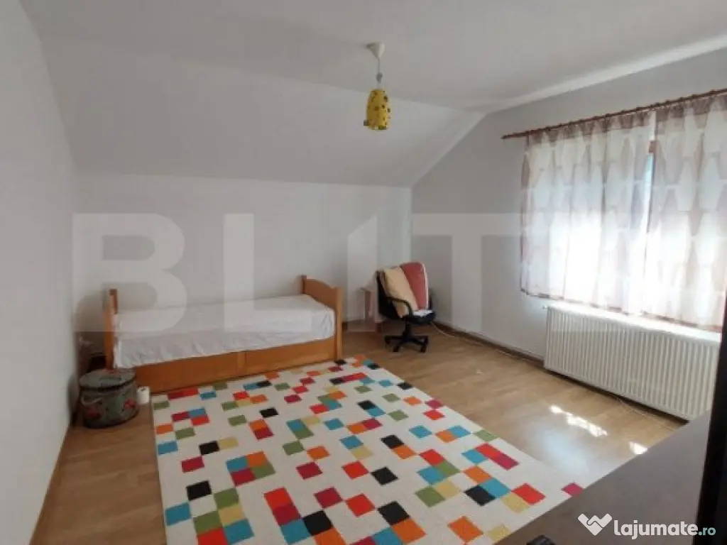 Casă individuală de vânzare în Dezmir – O oportunitate excelentă pentru o familie mare! Blitz Imobiliare vă oferă spre vânzare o casă individuală cu o suprafață utilă de 240 mp, situată pe un teren generos de 1200 mp, plus 150 mp cote comune. Această proprietate este ideală pentru o familie mare, oferind un spațiu confortabil și bine compartimentat. Detalii proprietate: Teren: Livadă, grădină și spații deschise, perfect amenajate pentru relaxare sau activități în aer liber. Parter: Atelier mecanic, ce poate fi transformat cu ușurință în garaj sau în alte spații funcționale (beci, cameră tehnică cu baie, anexe). Etaj: Living generos cu bucătărie open space, ideal pentru petrecerea timpului cu familia 1 dormitor și 1 baie, oferind confort și intimitate Mezanin: 3 dormitoare spațioase, perfect compartimentate pentru un somn liniștit 1 baie suplimentară Dressing generos pe holul de la ultimul etaj, cu acces la pod printr-o scară retractabilă Caracteristici tehnice: Construcție: Edificată în 2010, din cărămidă Porotherm, asigurând o izolație termică și fonică excelentă Utilități: Conectată la rețeaua electrică, inclusiv curent trifazic și apă; gazul se află la poartă. Încălzire: Sistem de încălzire pe lemne, cu calorifere montate inclusiv în atelier/service. Opțiuni de vânzare: Proprietatea se poate vinde și cu o suprafață mai mică de teren, respectiv 700 mp + 70 mp cotă comună. Pentru mai multe detalii sau pentru a programa o vizionare, vă așteptăm cu drag! Cod ofertă / ID BLITZ: P130904 Id intern: P130904 Număr niveluri imobil: 2 Număr Băi: 2 Nr. locuri parcare: 4 Curent Apă Gaz