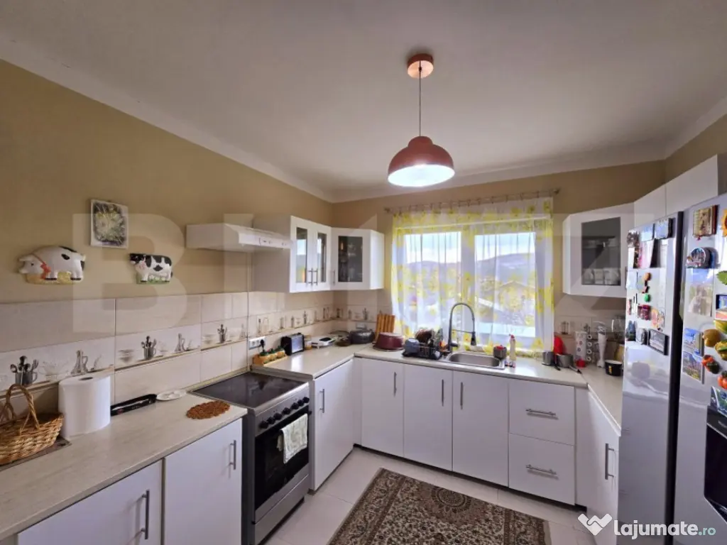 Într-un colț liniștit din Sălicea, acolo unde natura își păstrează farmecul neatins și fiecare dimineață începe cu o priveliște care îți taie răsuflarea, se află o casă care a fost construită cu grijă și suflet în anul 2019. Nu este doar o locuință, ci un cămin – unul care a fost gândit pentru confort, liniște și o viață trăită frumos. Casa se desfășoară armonios pe un singur nivel, având o suprafață utilă de 100 de metri pătrați. Când îi treci pragul, te întâmpină un living spațios și luminos, de 40 de metri pătrați – locul perfect pentru seri liniștite în familie sau dimineți tihnite cu o cafea în mână, privind spre geamurile largi care lasă lumina să danseze în voie. Bucătăria este separată, așa cum mulți și-ar dori, și are și o cămară pentru alimente, păstrând acel aer de gospodărie bine organizată. Două dormitoare primitoare, două băi moderne, o cameră tehnică pentru centrală și un beci generos completează spațiul interior, oferind tot ce ai nevoie pentru confortul zilnic. Terenul pe care este așezată casa măsoară nu mai puțin de 1100 mp – suficient loc pentru o grădină, un loc de joacă pentru copii sau poate chiar un mic colț de livadă. Totul este deja pregătit: casa se vinde complet finisată, mobilată și utilată, gata să își primească noii proprietari fără bătăi de cap. Sistemul de încălzire este realizat cu un termosemineu pe peleți – o soluție modernă, eficientă și economică, care păstrează atmosfera caldă și plăcută chiar și în cele mai reci zile de iarnă. Este o casă care îmbină liniștea vieții la țară cu confortul modern, o casă care îți oferă spațiu, intimitate și sentimentul acela rar că ești exact acolo unde trebuie să fii. Cod ofertă / ID BLITZ: P144149 Id intern: P144149 Număr Băi: 1 Nr. locuri parcare: 2 Curent Apă