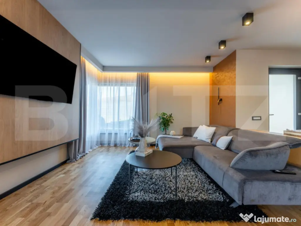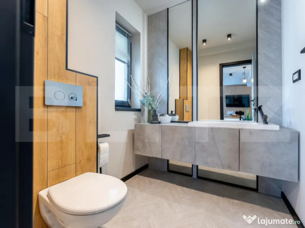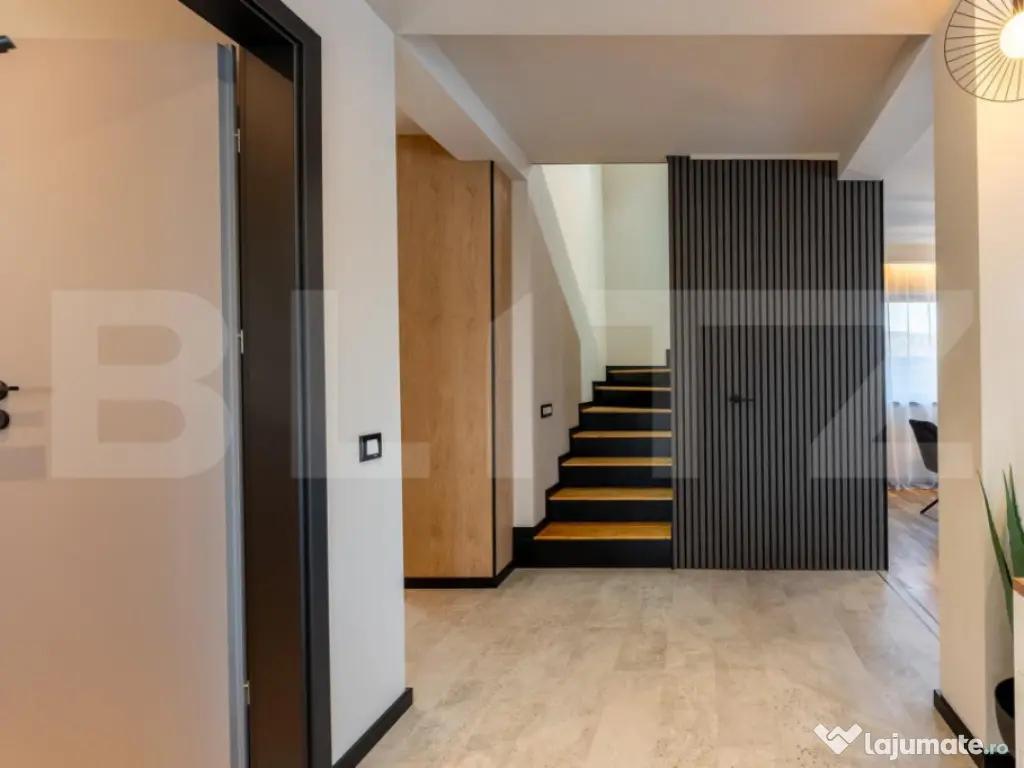 Blitz ofera spre vânzare o casă individuală ultrafinisată la cheie la doar 15 minute de Cluj! Casă nouă, în zona Baciu - Suceagu – UltraFinisata si mobilita, design luminos și curte amenajată. Descoperă o locuință elegantă, nou construită, situată într-o zona frumoasa si liniștită. Casa îmbină perfect rafinamentul finisajelor cu funcționalitatea unui cămin modern, oferind confort, spațiu și lumină naturală în fiecare cameră. Detalii generale Suprafață construită: 168 mp Suprafață utilă: 120 mp (fără terase) Suprafață teren: 600 mp Regim de înălțime: parter + etaj Compartimentare Parter: Living - dinning cu ieșire pe balcon Bucătărie separata cu intrare in spațiul tehnic Baie modernă Dressing sub casa scarii Etaj: Dormitor matrimonial mobilat complet, cu baie si dressing proprii Dormitor oaspeți mobilat complet Camera cu balcon parțial mobilată Baie cu duș și mașina de spălat haine, cu intrare din hol Electrocasnice: smart TV-uri în toate camerele, Mașina de spălat haine, plită, cuptor, frigider ! Construcție și finisaje Construită din materiale premium Geamuri tripan (3 sticle low-e, profil 7 camere) Izolație cu polistiren Austrotherm EPS100, grosime 10 cm Tencuială nobilă siliconată și caramida decorativă pe fațadă Încălzire în pardoseală (Tece ) Interior tencuit pe bază de ciment și finisat cu două straturi de glet, vopsea lavabilă San Marco, parchet stratificat, gresie Italia Predare la cheie Casa se predă complet finisată: Parchet și uși interioare montate Băi mobilate și utilate Prize și întrerupătoare instalate (modulare Schneider) Curte amenajată cu gazon, pavaj, piatră decorativă, conifere Utilități: Curent, apă, canalizare, pompă de căldură Mitsubishi Această casă este alegerea ideală pentru o familie care își dorește un cămin luminos, modern și complet finalizat, într-o zonă liniștită, cu acces rapid către oraș ( 15 min până în centrul Clujului) și 5 min până la intrarea pe autostradă, plus drum de acces catre casa Radio din Grigorescu. Mai multe unitati disponibile si semifinisate la 183990, va astepotam la vizionare si nu o sa fiti dezamagiti !! Preturile afisate sunt la plata cash ! Cod ofertă / ID BLITZ: P158000 Id intern: P158000 Număr niveluri imobil: 1 Număr Băi: 3 Nr. locuri parcare: 3