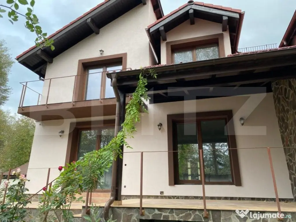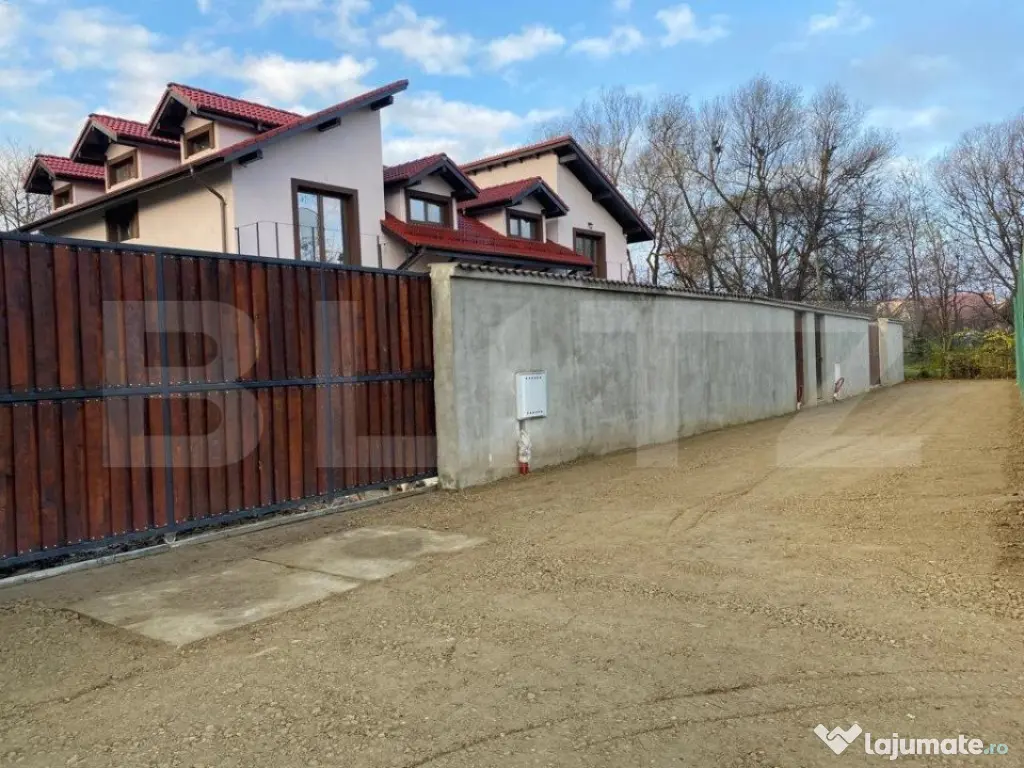 BLITZ ofera spre vanzare case premium de tip duplex intr-o zona linistita si ferita de agitatia urbana din Ghimbav. Zona va ofera intimitate, cu acces facil, de unde poți ajunge rapid și ușor în orice zonă, în siguranță, fără trafic aglomerat și neplăcut. Constructia este finalizata in proportie de 80% , este desfasurata pe un regim de inaltime D+P+M pe o suprafata utila de 240 mp si este compartimentata astfel: - Demisol: sala de sport, baie, camera tehnica, uscatorie, hol - Parter: living cu loc de luat masa, bucatarie, baie, hol - Mansarda: 3 dormitoare, unul matrimonial cu baie proprie, baie, dressing comun, hol Interiorul are o compartimentare excelenta, cu spatii perfect desfasurate, oferind un sentiment de prospetime in orice incapere ai pasi. Casele sunt construite cu materiale de cea mai buna calitate pana la cel mai mic detaliu, tamplarie termopan Salamander cu 3 foi de sticla, tigla ceramica. Acestea dispun de terasa acoperita, in curte dispun de garaj acoperit cu tigla si au magazie incorporata. Casele este racordata la toate utilitatile: apa, gaz, curent, canalizare. Incalzirea se va realiza prin centrala termica pe gaz, prin pardoseala in toata suprafata casei. Ambele beneficiaza de sitem de supraveghere video si interfon. Daca v-am starnit interesul, va asteptam la vizionare pentru a vedea cu adevarat potentialul acestei proprietati. Cod ofertă / ID BLITZ: P4443 Id intern: P4443 Număr niveluri imobil: 1 Număr Băi: 4 Nr. locuri parcare: 2