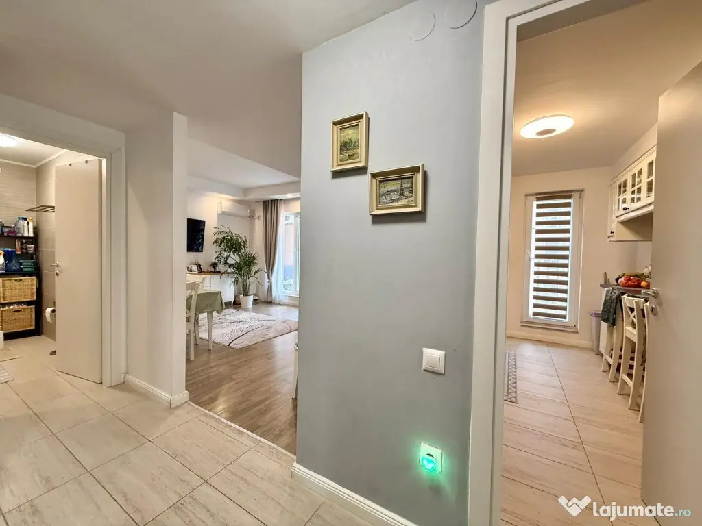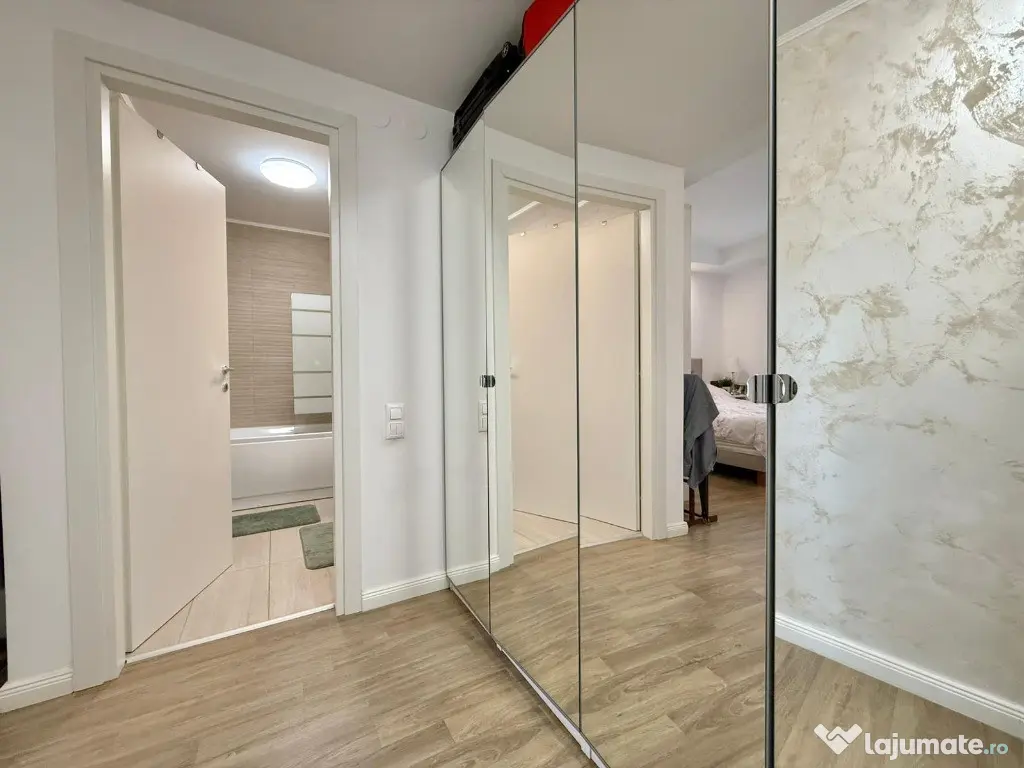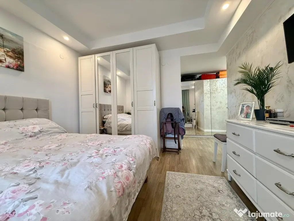 Va propunem spre vanzare un apartament de 3 camere, spatios, cu vedere spre piscina, in Complexul Rezidential Cosmopolis. Blocul este finalizat in anul 2020. Constructia este din caramida porotherm de 30 cm si izolatie de 10 cm. Apartamentul are centrala proprie si incalzire in pardoseala. Are o suprafata utila de 75 mp + 2 balcoane ( 3mp respectiv 4 mp), decomandat, multe spatii de depozitare. Este situat la etajul 3/6, orientare spre Sud, cu vedere la piscina. Se vinde partial mobilat. In pretul apartamentului este inclus si un loc de parcare suprateran. Cartierului Rezidential Cosmopolis este pozitionat in partea de Nord a Bucurestiului avand acces facil catre zona de birouri Pipera, principalele zone de distractie si cumparaturi din Nord (Baneasa Shopping City, Promenada Mall, Gradina Zoo, Divertiland, Therme, etc.) si iesirile principale din Bucuresti catre munte si mare (A2 si A3). Este la 800 m de Autostrada Bucuresti-Ploiesti si intre cele doua poduri Pipera-Tunari si Andronache-Stefanestii de Jos. Locuinta beneficiaza de facilitatile complexului: Retail Park Cosmopolis Plaza cu peste 70 de magazine si 400 de locuri de parcare (retailer de top Jysk, C&A, Pepco, Tedi, Animax, Sinsay, Kik, Noriel, dar si branduri nationale bine-cunoscute Dr. Max, Domino's Pizza, Shaormeria Baneasa, Spartan, Magazin de produse traditionale, etc.) Supermarket-uri Lidl si Carrefour Supermecato Italia Restaurante si cafenele Sala de Fitness - WorldClass Terenuri de sport (1 teren fotbal, 2 terenuri de tenis) Peste 60 de piscine exterioare 2 gradinite (private), 1 scoala (privata), 1 scoala de stat in 4 parcuri (unul de aprox. 4000mp), 4 locuri de joaca pentru copii Centru medical Affidea Biserica ortodoxa si moschee Paza BGS 24/24 Transport asigurat pana la metrou Pipera Birou impozite si taxe locale Spalatorie auto si service auto, etc. Locuinta are toate documentele necesare pentru vanzare. Pentru detalii si vizionari, va stam la dispozitie. Confort: 1 Tip imobil: Bloc de apartamente