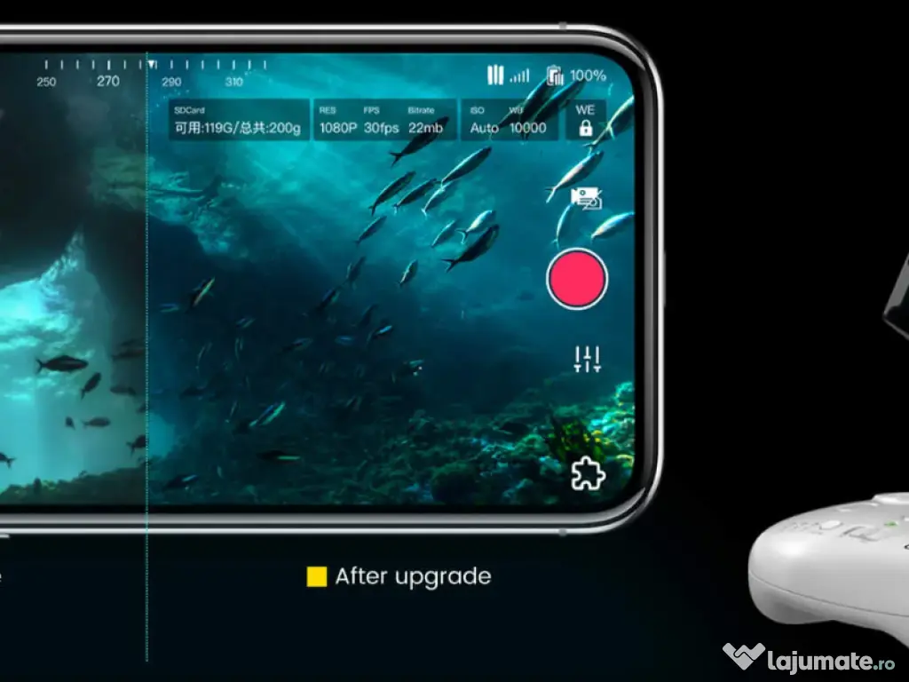 - Cameră 4K UHD (30 fps), fotografii 12 MP, stabilizare EIS