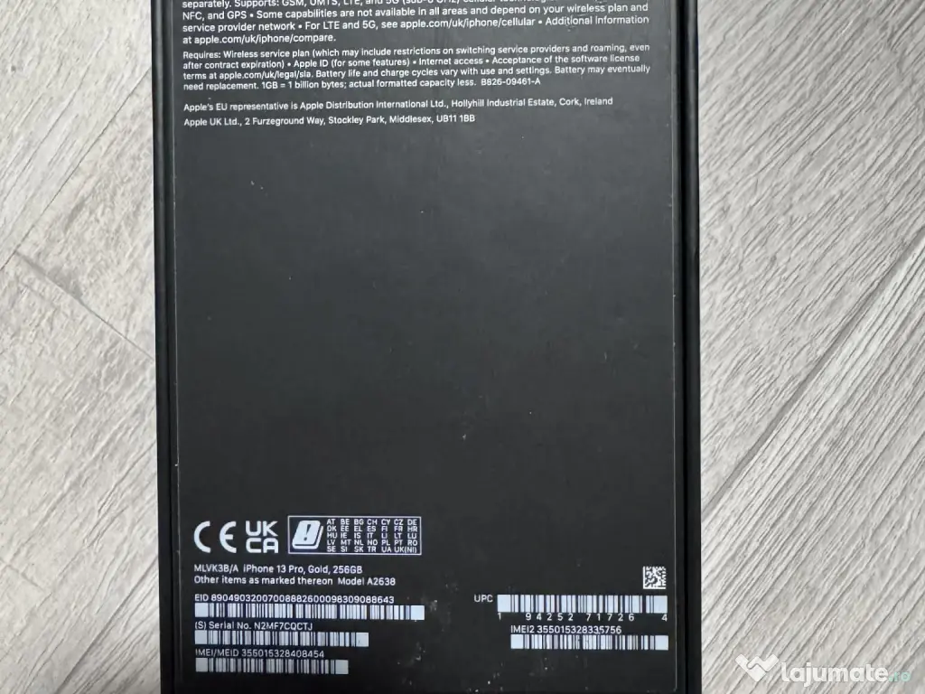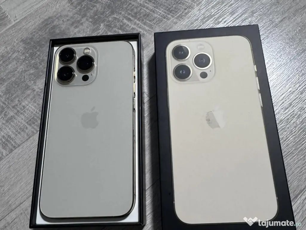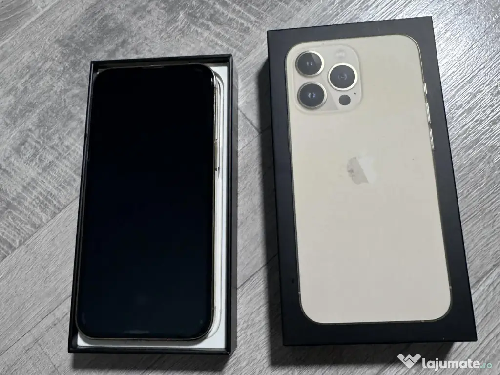 Vând iPhone 13 Pro, varianta de stocare generoasă de 256 GB, în eleganta culoare Gold. Telefonul a fost întreținut obsesiv, fiind protejat din prima zi cu husă și folie pe ecran.