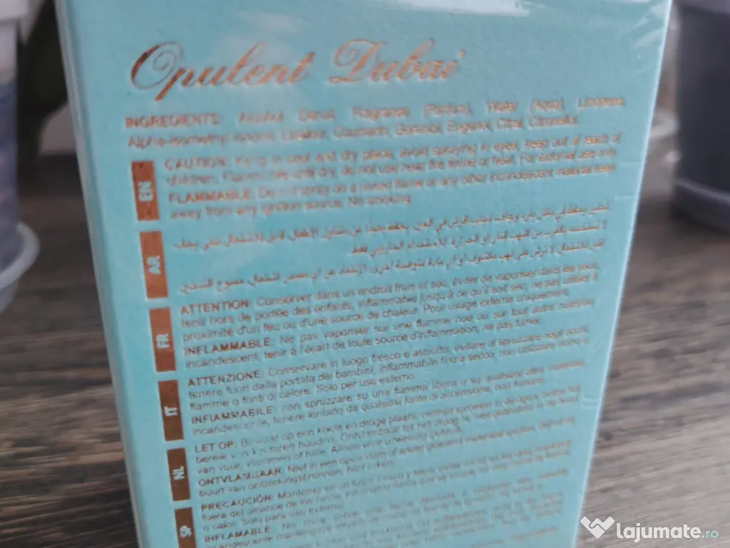 Parfumul Lattafa Opulent Dubai, nou și sigilat, este un eau de parfum de 100ml. Perfect pentru a-ți completa stilul cu o notă luxoasă și rafinată.