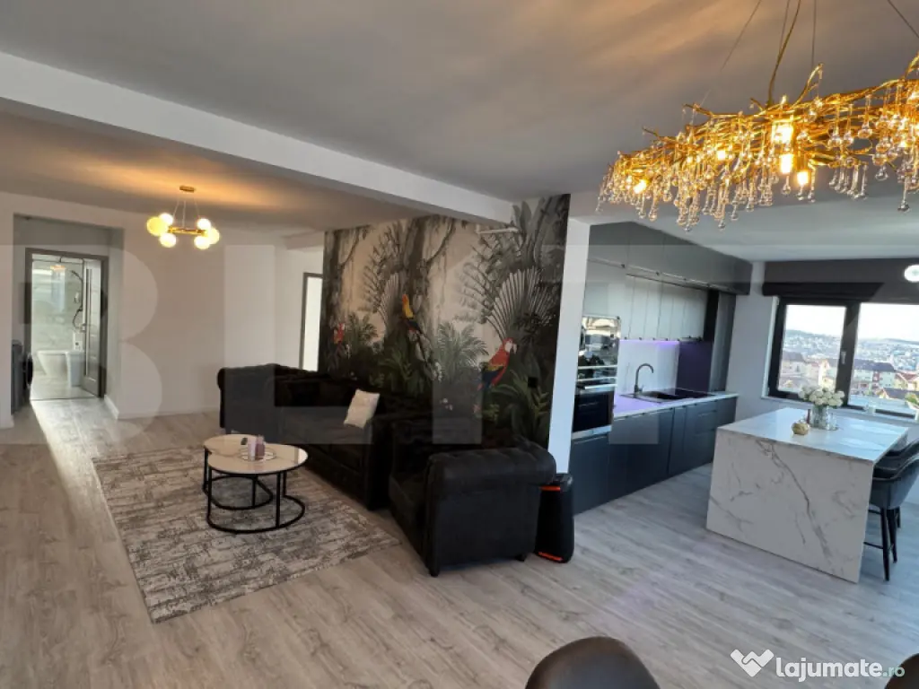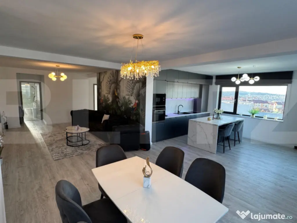 Blitz va prezinta un penthouse spectaculos, situat într-una dintre cele mai apreciate zone ale orașului, unde confortul și eleganța se îmbină perfect. Proprietatea impresionează prin finisaje premium, alese cu grijă pentru a crea un ambient modern și rafinat, precum și prin mobilierul de calitate, care completează armonios fiecare încăpere. Spațiul generos este luminat natural pe tot parcursul zilei, oferind o atmosferă caldă și primitoare. Livingul deschis se îmbină perfect cu zona de dining și bucătăria complet utilată, creând locul ideal pentru relaxare sau socializare. Punctul forte al acestui penthouse este terasa de 28 mp, un spațiu perfect pentru momente de liniște, cafeaua de dimineață sau seri petrecute alături de cei dragi, cu o priveliște deosebită asupra orașului. Ideal pentru cei care își doresc un stil de viață exclusivist, într-o locație excelentă, această proprietate oferă echilibrul perfect între intimitate, confort și acces rapid către toate punctele de interes. Cod ofertă / ID BLITZ: P168925 Id intern: P168925 Confort: 1 Tip imobil: Bloc de apartamente Număr Băi: 2