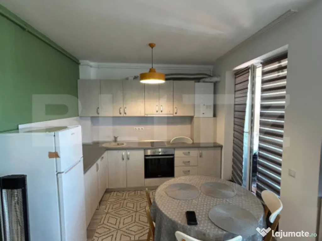 Blitz va propune spre vânzare un apartament tip studio complet mobilat și utilat ultramodern, situat la etajul 5 al unui bloc nou, cu lift– ideal pentru cei care caută confort, noutate și un cămin gata de mutat. Detalii apartament: Suprafață generoasă, compartimentare practică: – Living modern și luminos, open-space cu bucătăria – 1 Nisa de Dormit Baie elegantă, cu cabină de duș Terasa 42,6 mp + 5 mp balcon Dotări și beneficii: Mobilat complet, cu mobilier de calitate superioară Electrocasnice moderne – inclusiv mașină de spălat rufe, cuptor electric, plită Finisaje moderne Întreținere redusă, eficiență energetică ridicată Locație excelentă – într-un bloc nou, liniștit și bine poziționat: Aproape de facilități urbane: magazine, transport public, spații verzi, stație de autobuz Acces rapid către zonele de interes din oraș. Apartamentul se vinde de pe firma cu posibilitate de taxare inversa iar pretul este cu TVA inclus. Cod ofertă / ID BLITZ: P151461 Id intern: P151461 Confort: 1 Tip imobil: Bloc de apartamente Număr Băi: 1